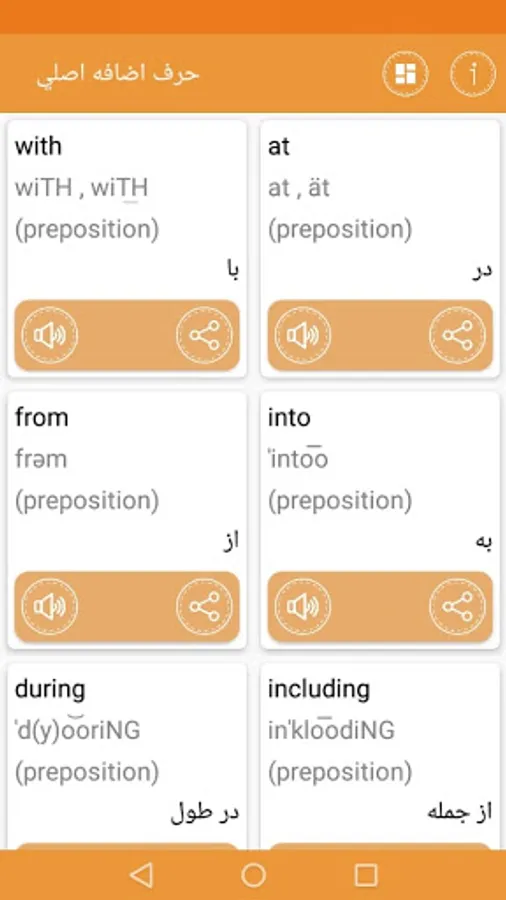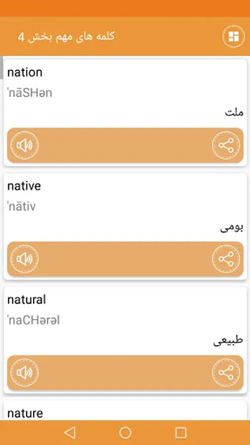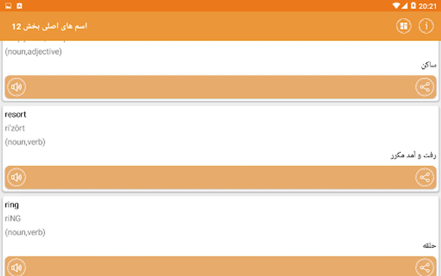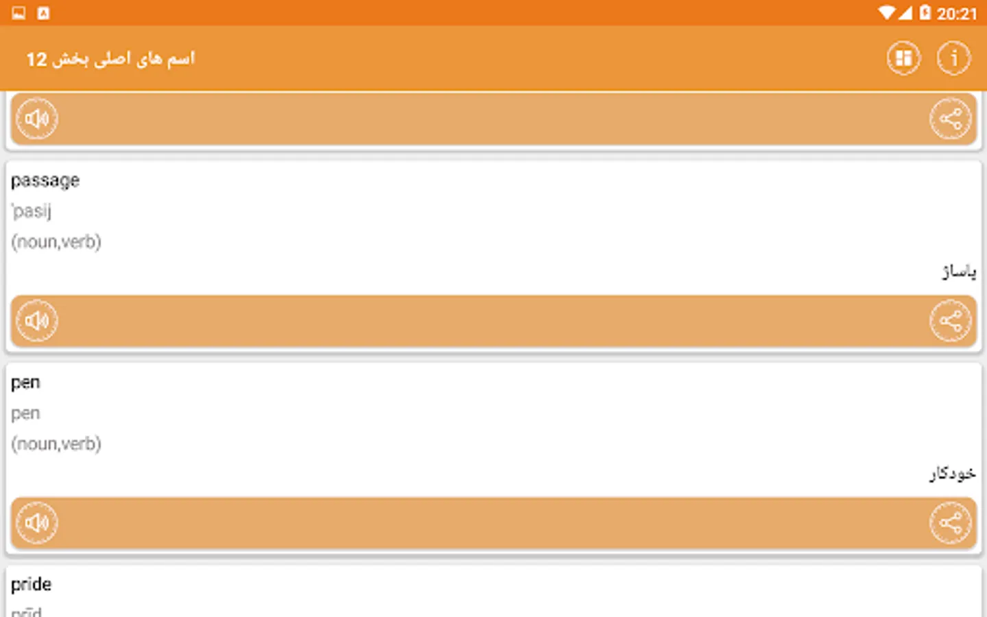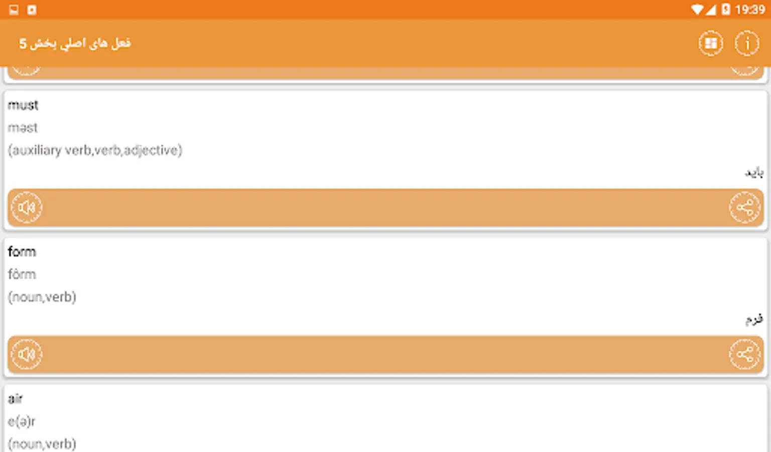 In this application, we focus on learning English words for Persian language, as well as English sentences (the most widely used English sentences) and English proverbs with Persian translation. Free English conversation training has been one of our goals for making this software.