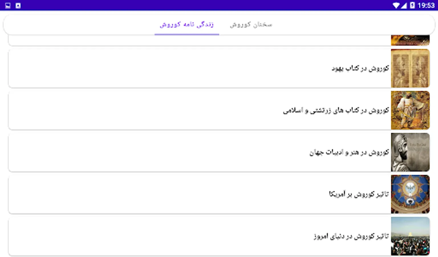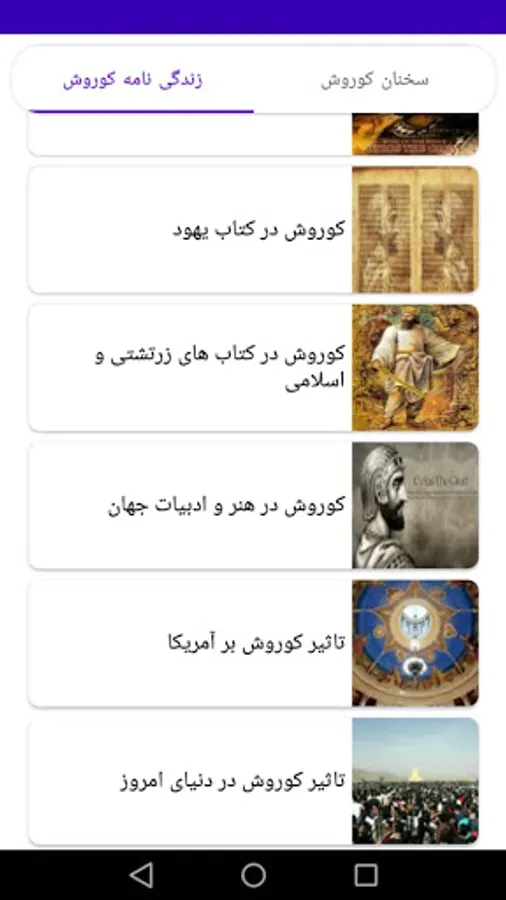 Some of the issues that we deal with in this software are his childhood and adolescence, the will of Cyrus, Cyrus the Great in the Qur'an, his wife and children, the influence of Cyrus in today's world and ...