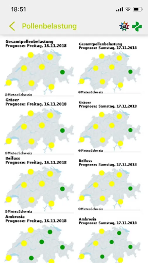 Inform yourself daily about the current pollen report and the ozone values in Switzerland or read the latest «my health» magazine directly on your screen.