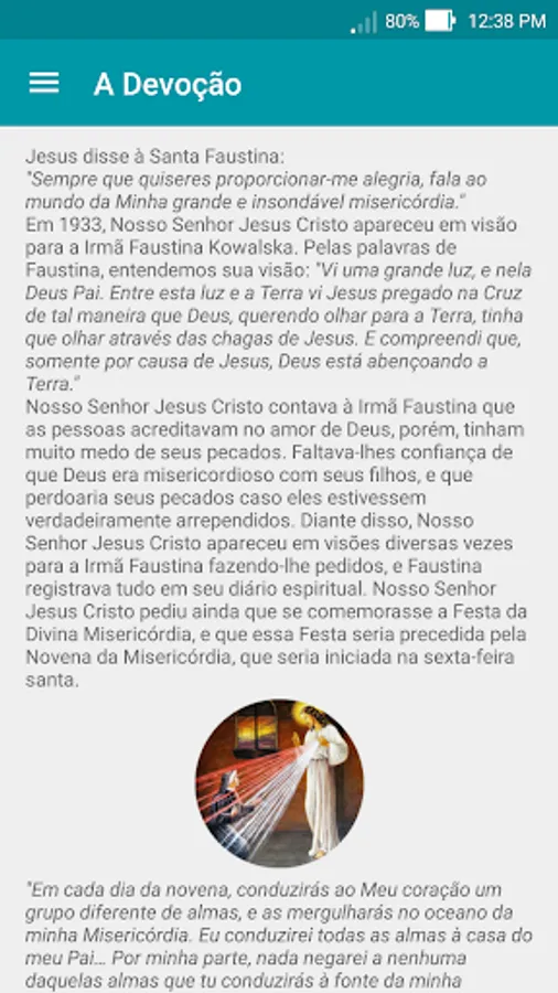 In order to attract more people to know the devotion of Divine Mercy, this application comes down and tells the story of this devotion, as well as the saints, people and all cases that led to the knowledge and dissemination of Divine Mercy to the world.