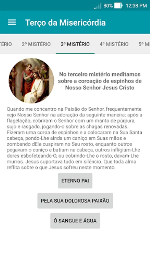 The Application also has a special section where you can pray the Chaplet of Mercy, meditating on the mysteries of the Passion of Our Lord Jesus Christ. All meditations are based on the writings of the Diary of Saint Faustina, holy which received the visions of Merciful Jesus.