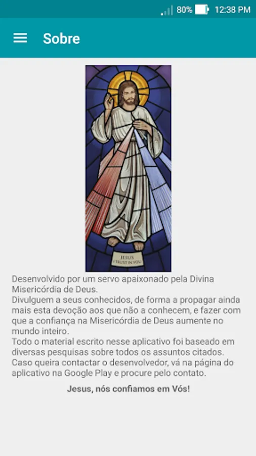 The application was developed by a passionate servant for this devotion, and a member of the Eucharistic Youth Movement, where I first met the Divine Mercy and also the Rosary. Therefore, the application contains a session that tells a little of the history of this movement, whose charisma the Sacred Heart of Jesus.