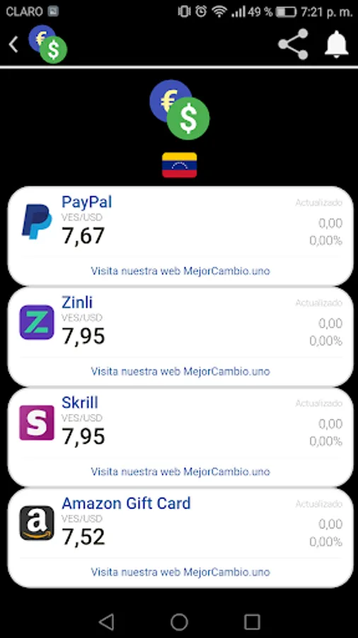 -See the most used rates in Venezuela as (dolartoday, monitordolar, enparalelo