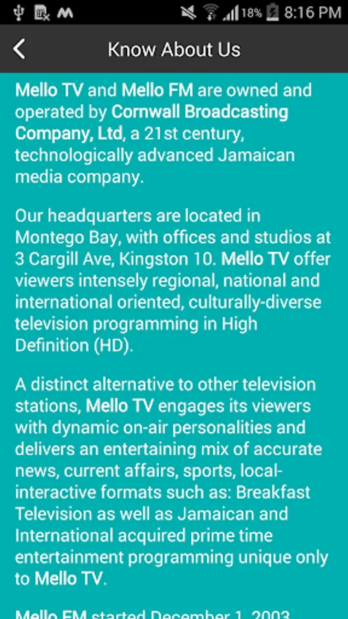 Mello TV is Jamaica’s 24 hour Television station. Our platform is HD and is