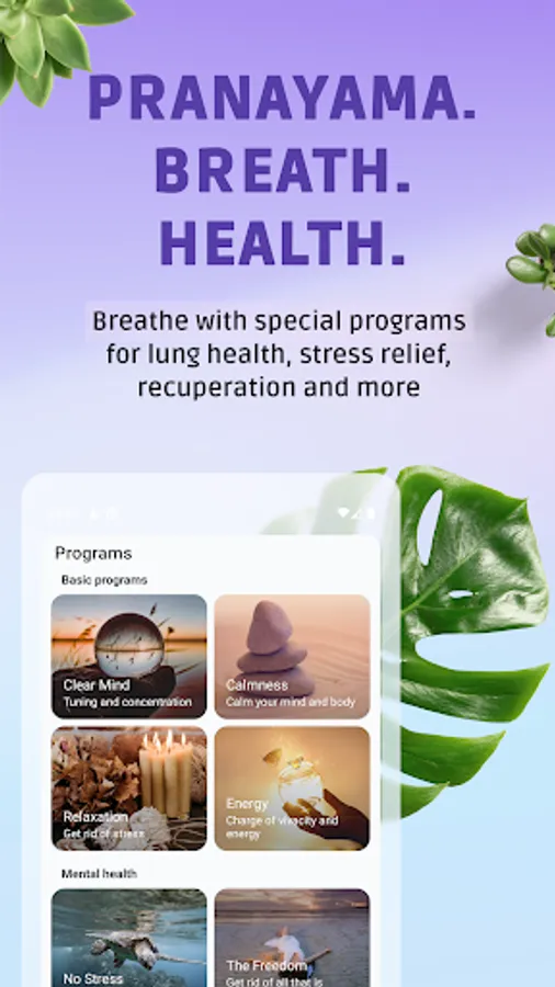 It is recommended to choose 1-3 programs and practice regularly in our inhale exhale app. Visible results may appear as early as the first week. Pranaria has a challenging free breathwork system with which you can customize your training schedule and track your progress.