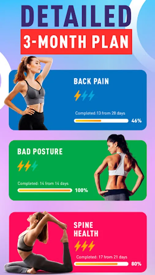 The only thing you need to do is just follow our virtual instructor recommendations and do the back exercises for women & men. And the results will definitely come in a short time. Let us do an experiment. Try to do the first week in the yoga for better posture correction app & spine workout...