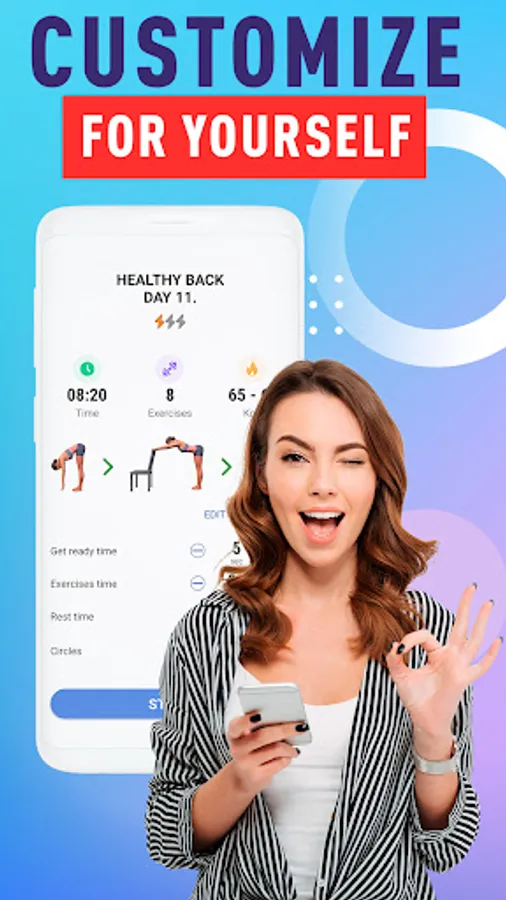 The main goal of this application is to create a stable habit of back flexibility stretches, strengthen them and make flexible. Finally, try to do spine exercises for at least a week, and you will definitely see results and will become more energetic. This app is developed for all age groups. Posture exercises are divided by difficulty and are suitable for both men, women, children, and elderly people and for everyone who needs spinal cord injury exercise.