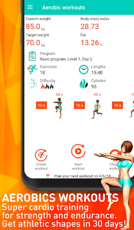 🏅 The purpose of this application is to create a sustainable habit of regular exercise and training for your endurance. By the way, you do not need any internet connection, and you can do all aerobics at home offline.