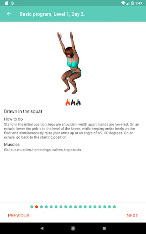 ✓ 25 different aerobics exercise for weight loss, for muscle strength and for endurance workout of different levels of complexity and for all muscle groups;