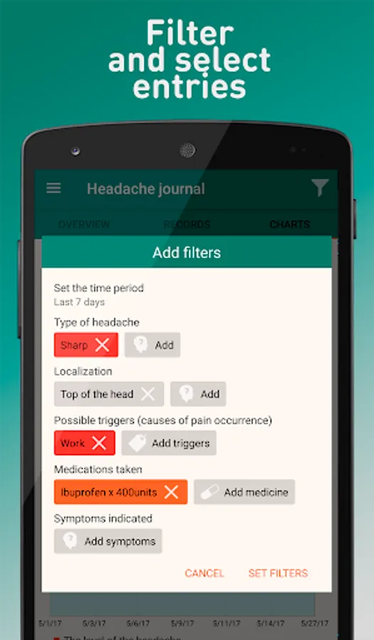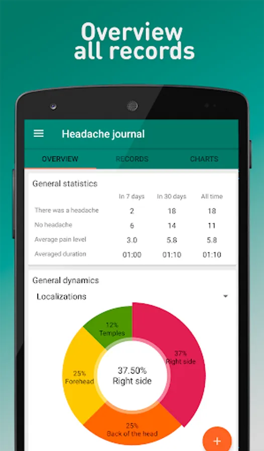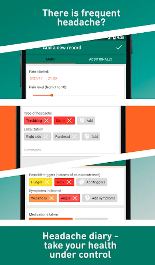Tracking and fixing in the application all situations when you have a headache, you can add potential triggers and context, in order to understand your body and determine when and why it happens.