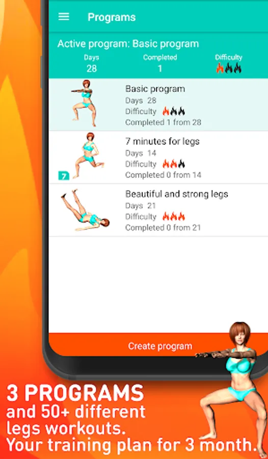 ✓ 3 training programs are provided and prepared for effective thighs and glutes workout and you can also create your own lower body workout for women, set the level of difficulty and length. Make 30 day legs workout challenge and you will definitely see the results;