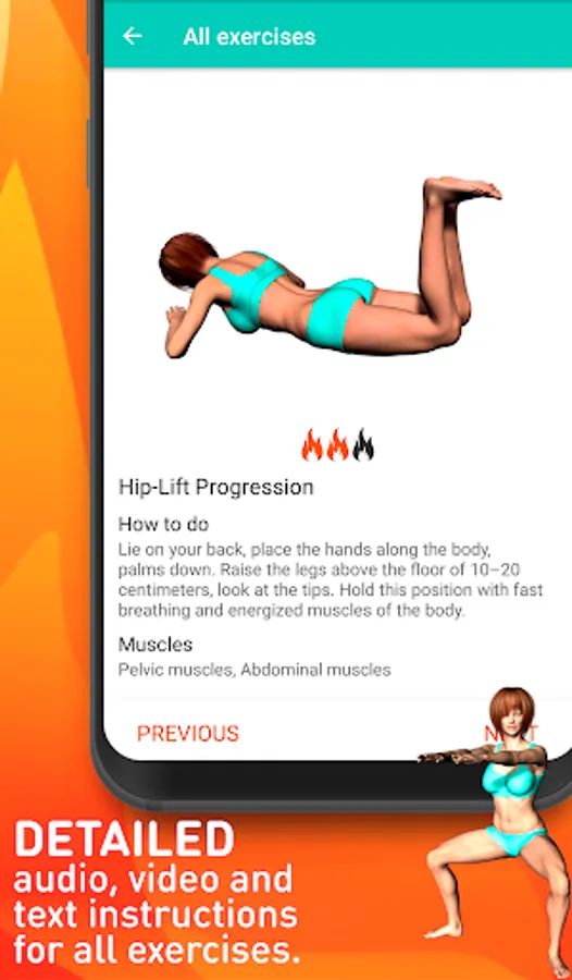 ✓ Each legs training exercise contains detailed audio and text instructions and videos of it's implementation;