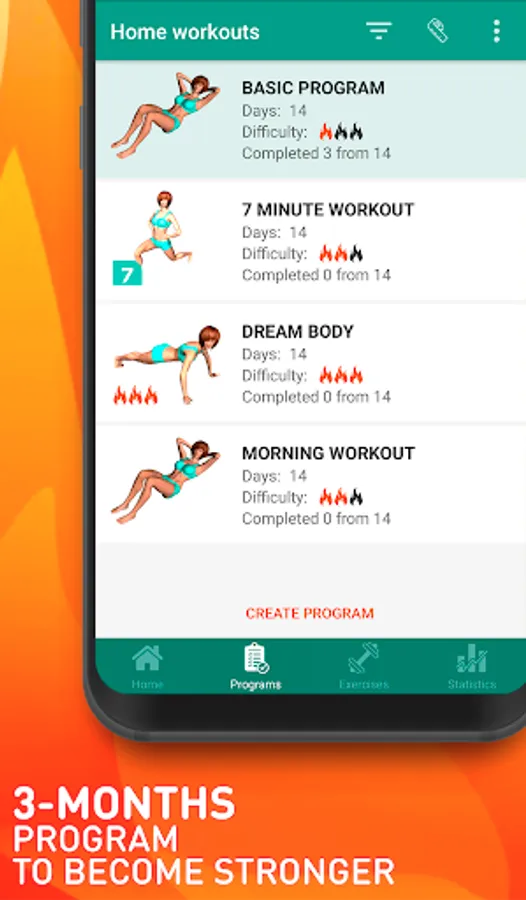 ⭐ In this app we have collected the most effective and time-tested exercises for gymnastic training at home for all muscle groups and combined them into 4 home training programs. Virtual home trainer will accompany you throughout the home workout exercises, show and tell you how to properly and effectively perform each exercise so that each home workout program will maximize your results in short time. All programs vary in level of difficulty, and you can freely choose the workout, as well as create your own programs from 46 different types of exercises, set their duration, the time of preparation and rest. To do home workouts - no equipment is required, just get your phone and make your muscles work.