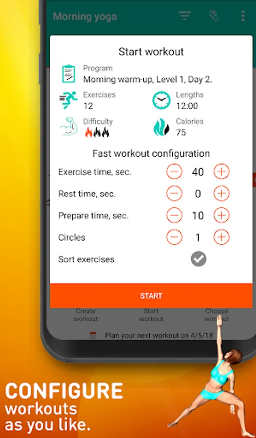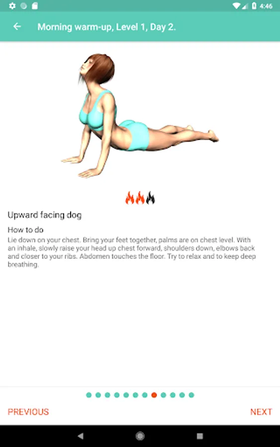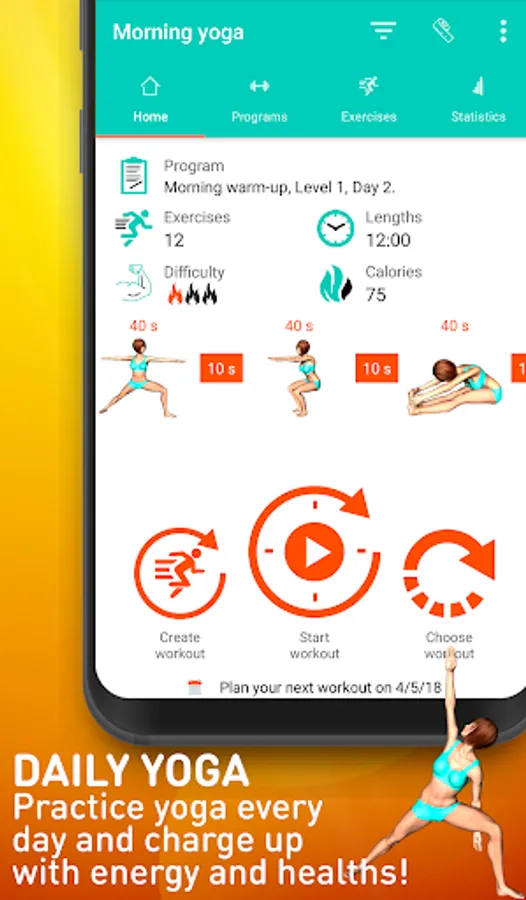 Yoga daily workout for flexibility and stretch – is a set of stretch yoga programs with over 42 different workouts and 39+ different exercises. Yoga daily fitness activity will allow you to get energy and good mood for the whole day. Virtual instructor will help and motivate you during all the exercises, tell and show how to perform each of the yoga flexibility exercises.