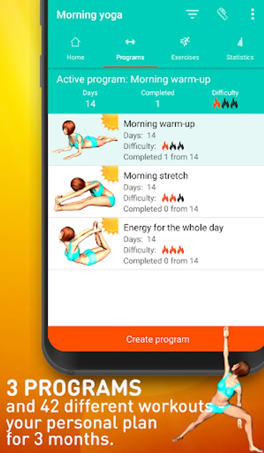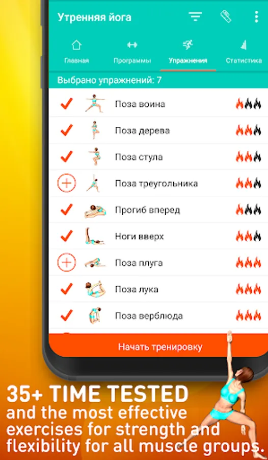 ✓ You can create your own morning yoga home workouts and programs for energy, flexibility and stretch from 39 different exercises;
