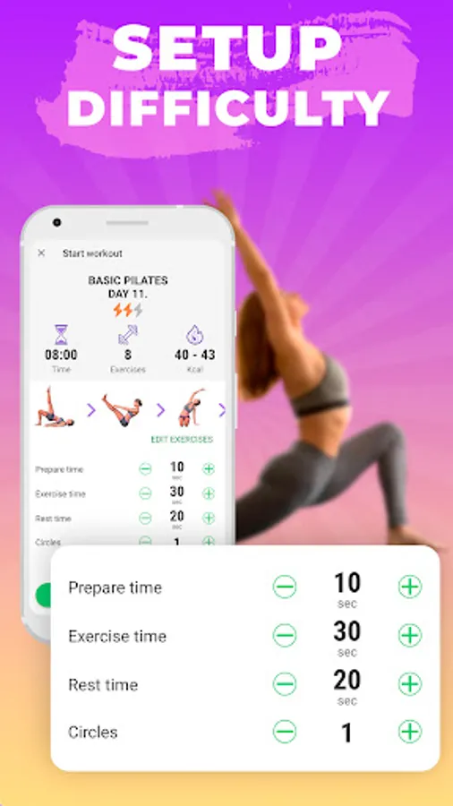 👍 Just try to do the first small workout series and take a challenge anytime. You will definitely see the results – stretching pilates for beginners offline is that fitness exercise routine will give you a great effect. By the way, with the help of this app, you can create a stable habit of doing regular sports, because floor exercises for weight loss take not more than 10 minutes a day.