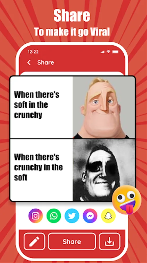 Meme Maker is a meme generator that helps you to make a meme quickly and easily. To make your friends laugh, choose a meme template, add funny captions, and share it on any social media.