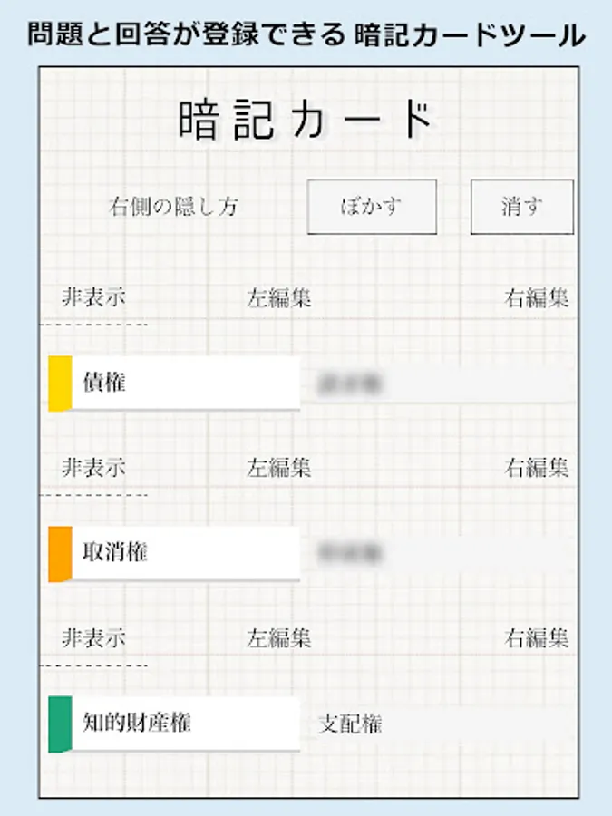 It is an application for input (memorization) learning corresponding to this year's Small and Medium Enterprise Management Consultant Examination.