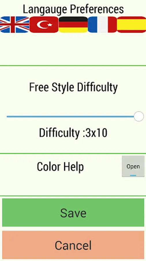 By turning the color help option on and off, you can increase or decrease the difficulty of the game.
