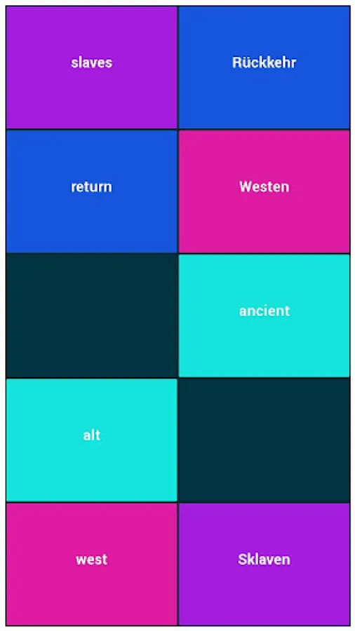 All you have to do is to remember the words on the two chords you have chosen. You need to match all of the scattered words. You will start to learn French or German with this fun game.