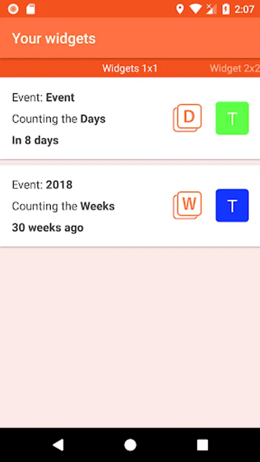 Beautiful, customizable widget for your home screen. Your choice shows the number of days/weeks/months from/to some event.