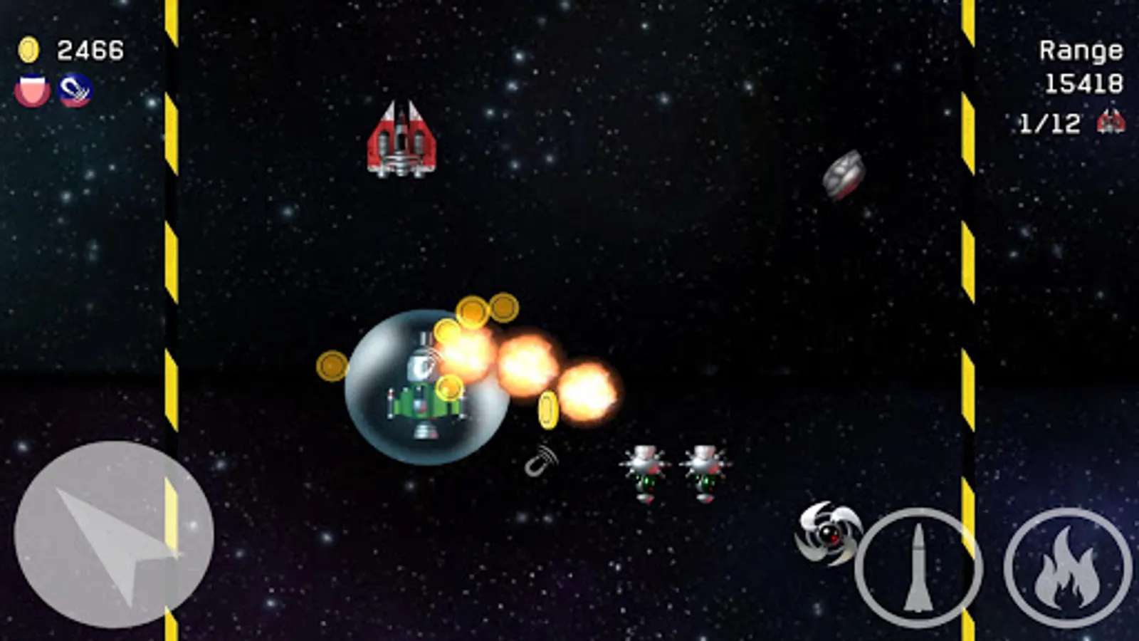In space, there is a war. You are a lone elite spacecraft with the most serious combat missions. You need to catch up and destroy enemy space ships with valuable cargo. But do not delay, and then you may run out of fuel.