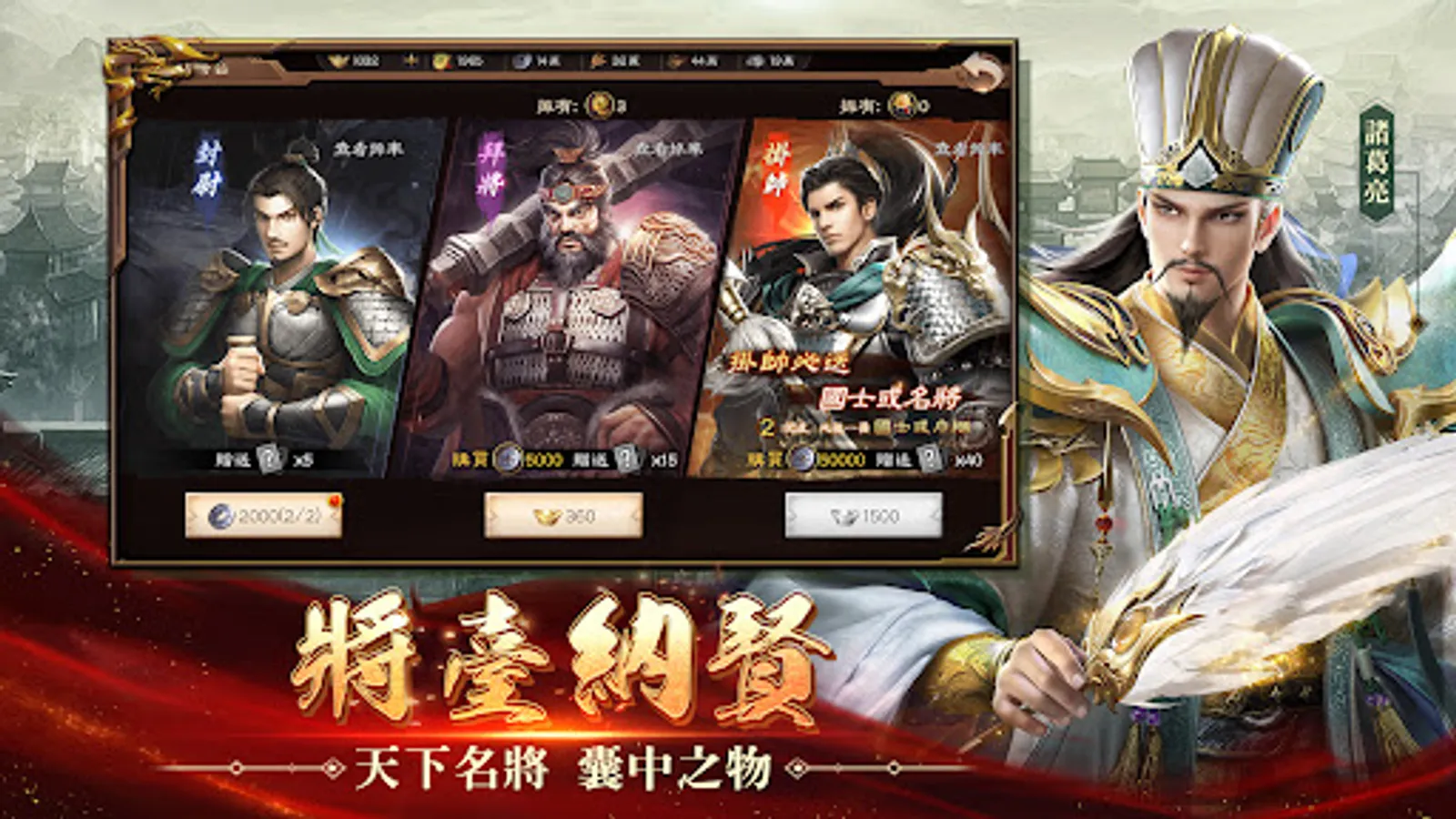 -Meet with more than 100 masters from the Three Kingdoms including Cao Cao, Guan Yu, Zhang Jiang, Liu Bo, Zhao Zilong, etc.
