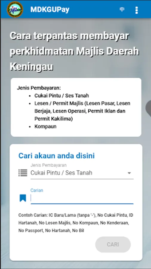 MDKgu Payment is a new and easy way to help you pay for your Majlis Daerah Keningau services. Everything is only a tap away, whether you're using the app over WiFi or Mobile Network.