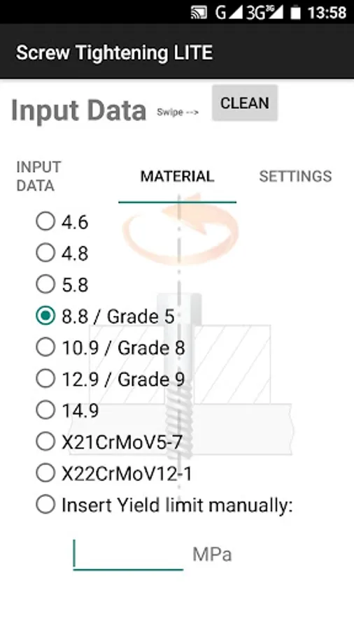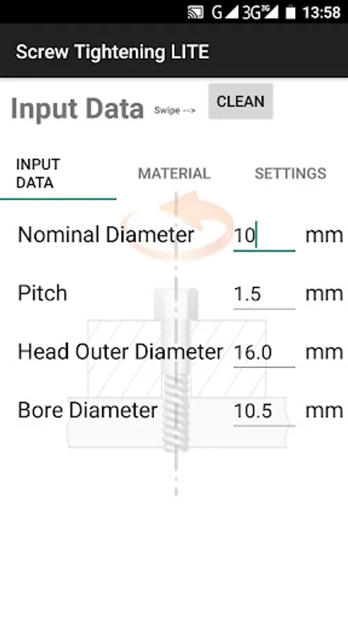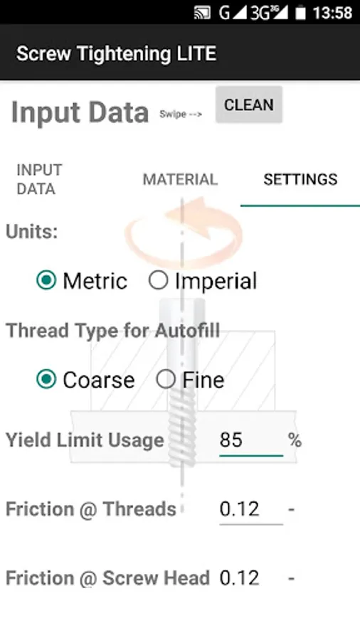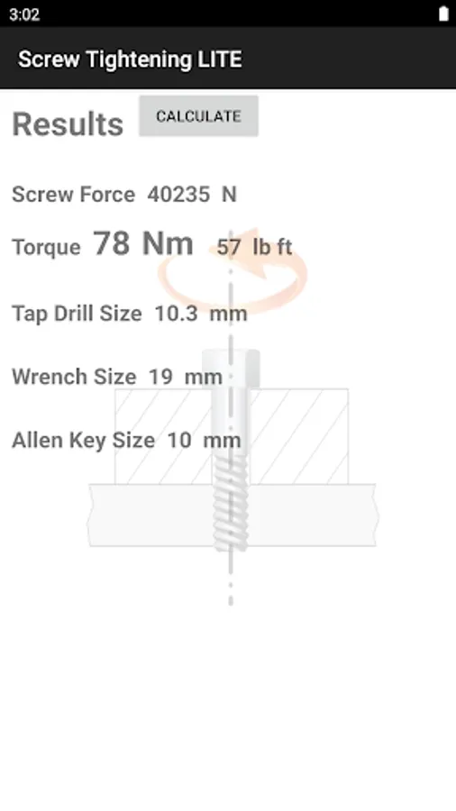 This app calculates bolt ( screw ) tightening torque.