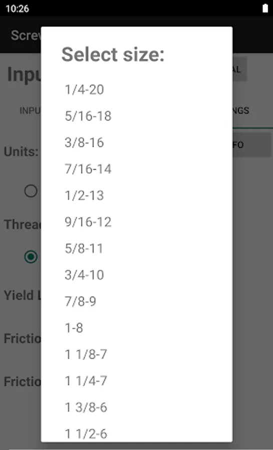 This app covers metric and imperial bolts, and dimensions of most often used coarse and fine -thread screws are automatically provided within the app.