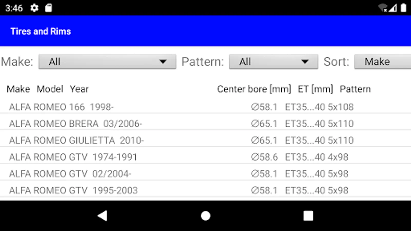 - Rim ( wheel ) bolt patterns for over 1000 car models with efficient sorting possibilities