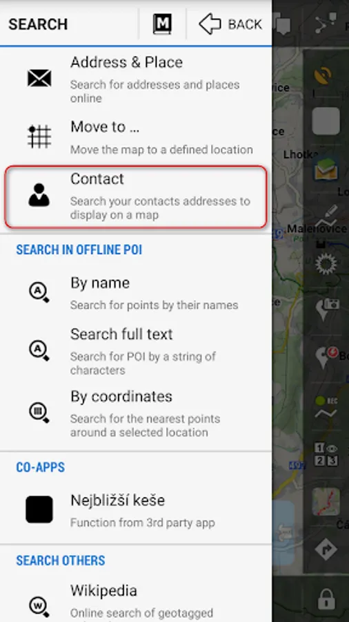 Add-on Contacts for Locus Map application enables searching and displaying addresses of contacts stored in your mobile device on a map. The add-on does not have its own screens or widgets, just adds the extra function.