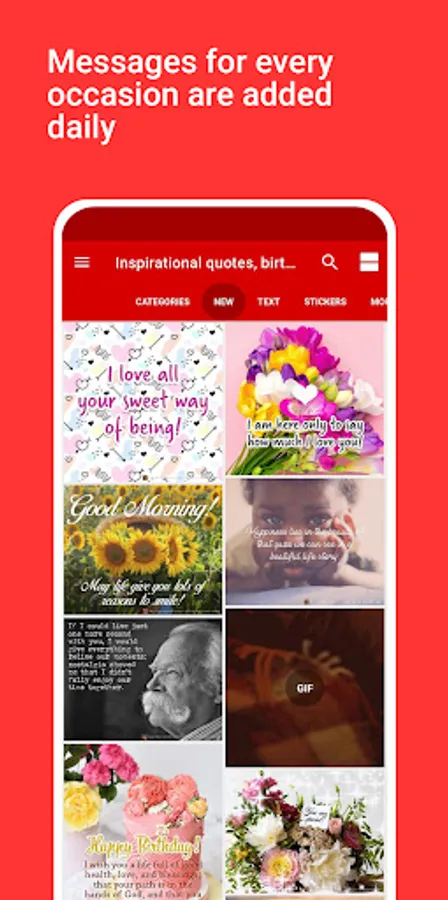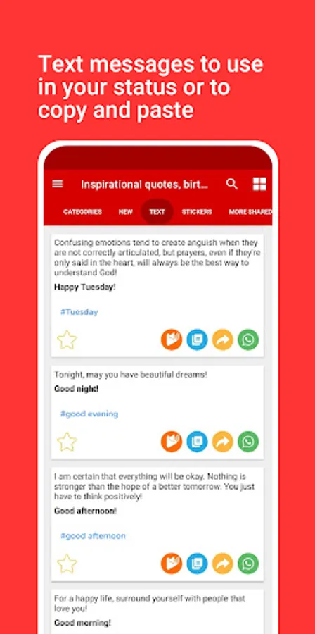 Daily quotes - status and images is the ideal app for you, who wants to have daily beautiful messages ready and status for each and every occasion to share with your friends, family and loved ones. Every day images with beautiful background, phrases and status updates of good morning, good afternoon, good night, love, days of the week, friendship, religion, faith, motivation, reflection, I love you, romantic, dating, marriage, jokes, birthday, congratulations, celebratory dates and much more...