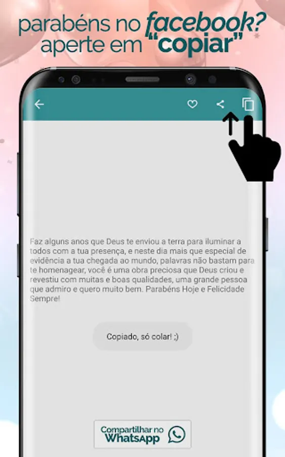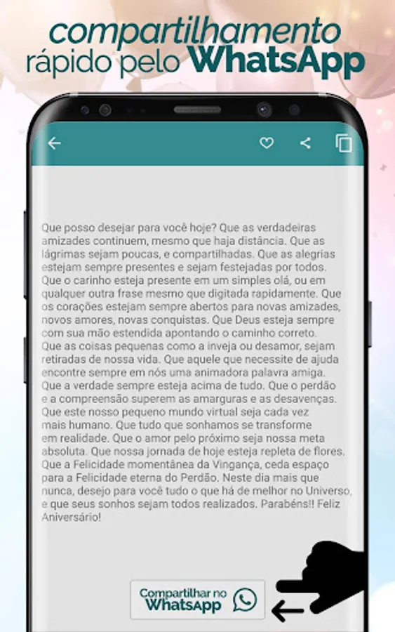 Messages and phrases ready for you to share with those you love. Beautiful and fun phrases, app with search, bookmarks, social media sharing (Facebook and Instagram) as well as quick one-button sharing for WhatsApp.