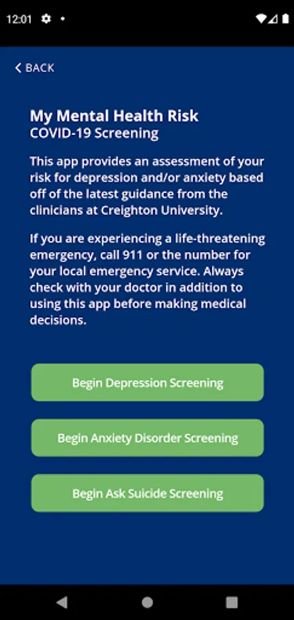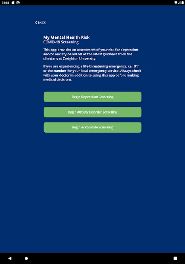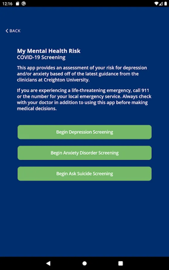 ”My Mental Health Risk App” is a user-friendly interactive mobile app that screens the individual user for mental health, mood disorder, depression, generalized anxiety disorder and suicide ideations. Screening assessment is built on user’s response to screening questions that have been proven reliable and validated by experts in the literature.