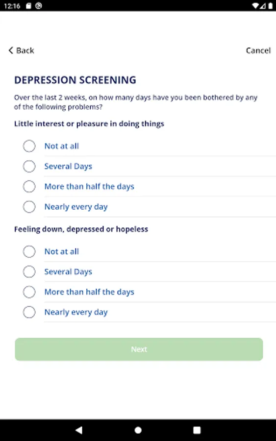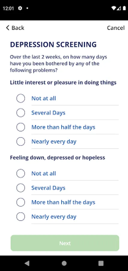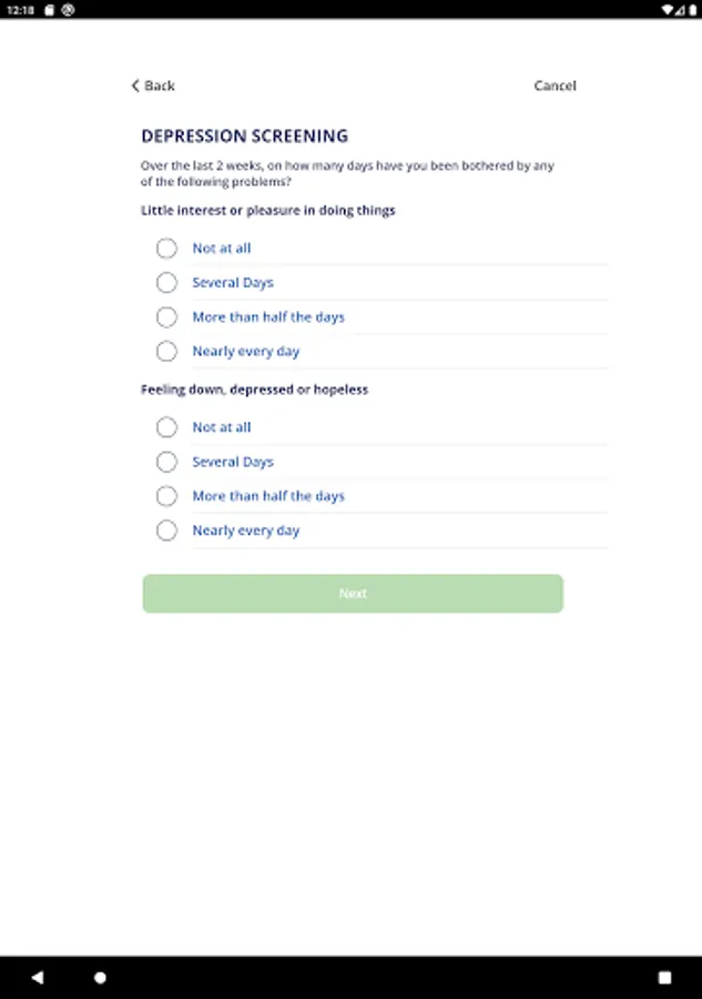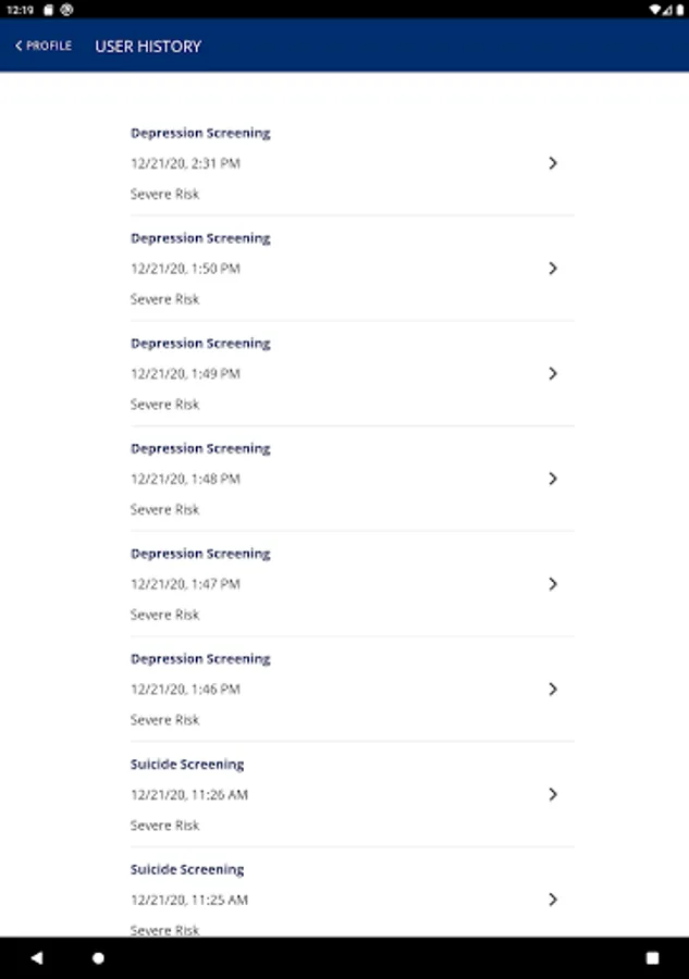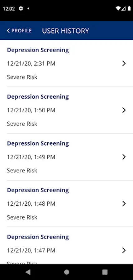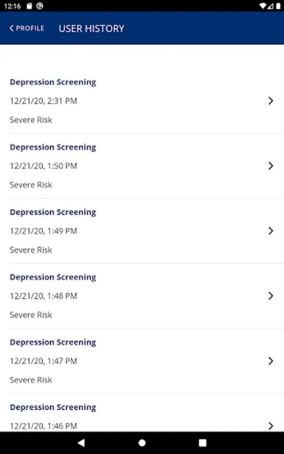 Previous mental health screenings on the app can be recalled and verified as needed. Progression of mental health status can also be monitored