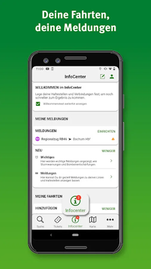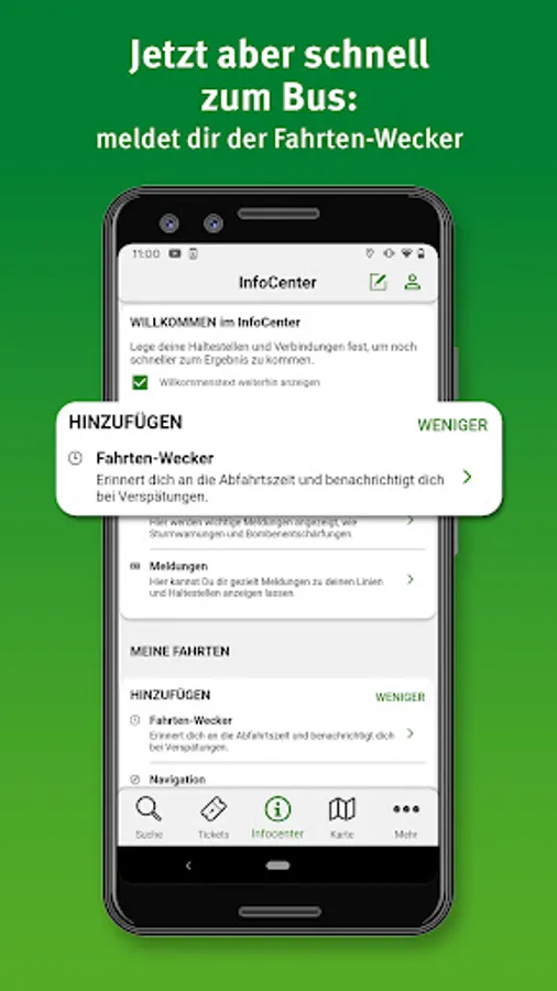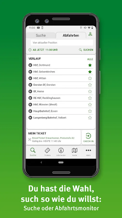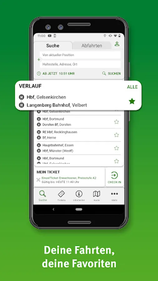 This also works for all trips nationwide and even for long-distance traffic, because we have integrated all timetable information in our bus and train information throughout Germany.