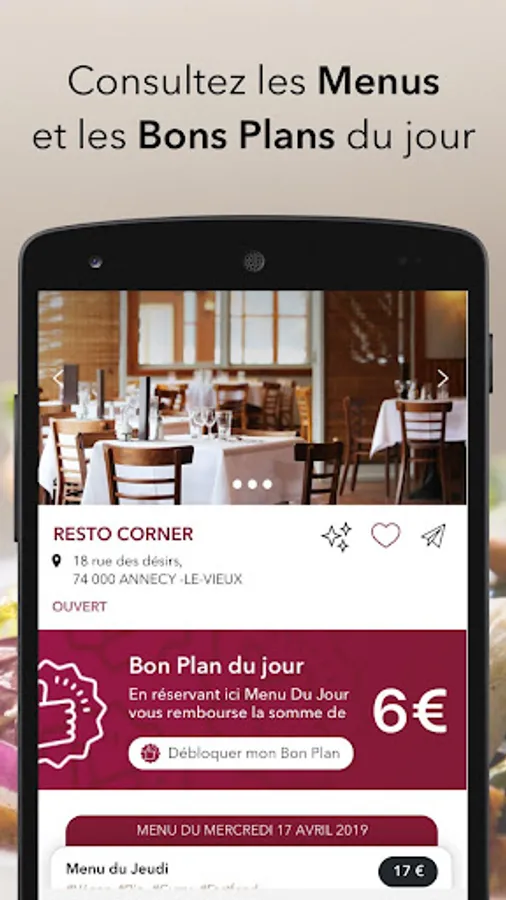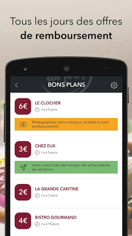 And, regularly, thousands of Good Deals offered: up to € 10 reimbursed on your restaurant meal, noon or evening, by simply sending a photo of your bill.