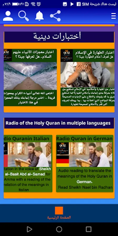 mequiz Quran Kareem Live Streaming is a Quran application that helps people listen to the Holy Quran streaming in (HQ) high quality MP3 in more than one language and 16 reciters and works 24/7 with a very user-friendly interface (Arabic and English)