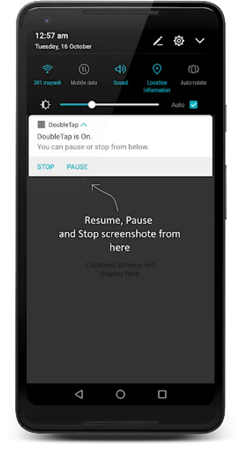 To make application more user friendly, you can Pause, Resume and Stop screenshots from notification.