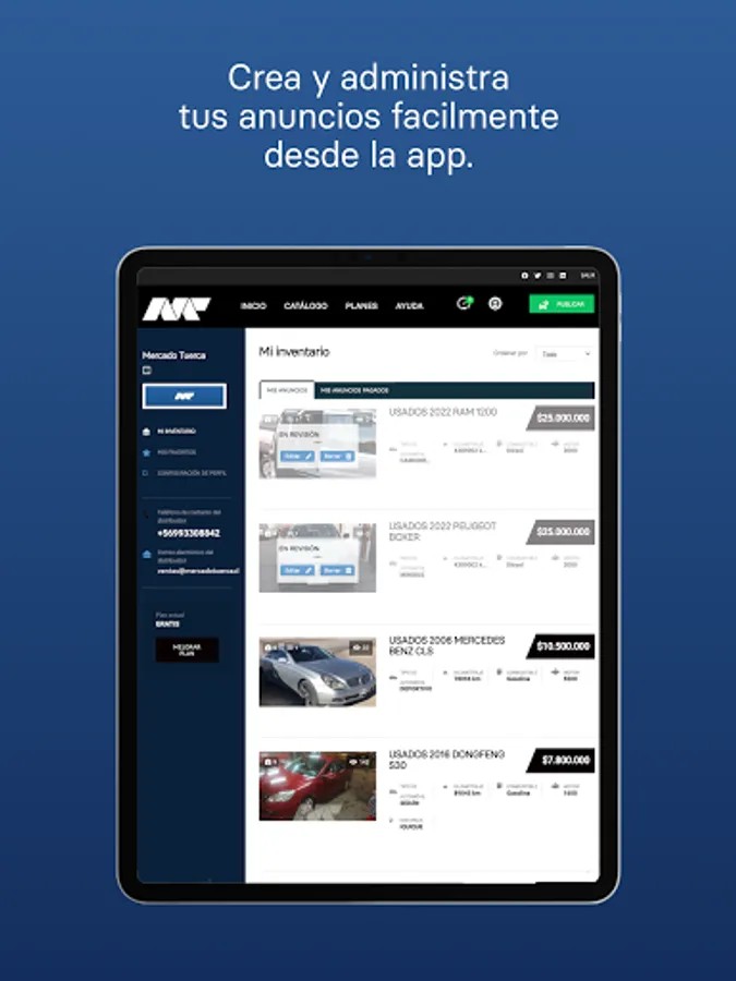 Easily create the page of your Automotive Company in Mercado Nuerca.