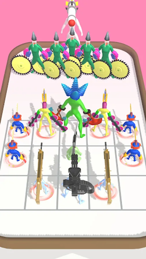 Merge the same Gun and Chainsaw monster to grow your powers