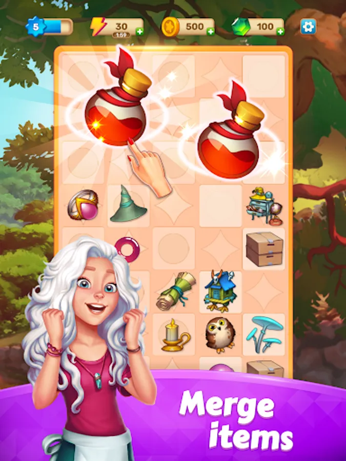 Mergic is a perfect game for those who like merge games, puzzle renovation games and who adore magic! Follow the story of a young witch in a small town who returned to an abandoned merge house in need of complete restoration. You have magical abilities in making potions, time, unique items - use them to repair the mysterious mansion and give it a luxurious new look! Merge magic items, solve puzzles and unlock new rooms in wonder merge game!