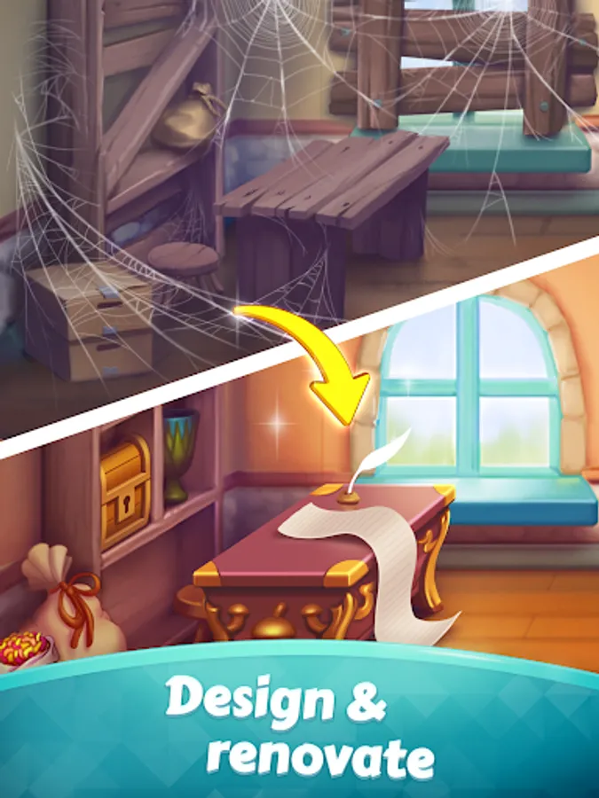 Download now and let your journey to the old mansion begin! Start your adventure, merge design and help the witch renovate her house!