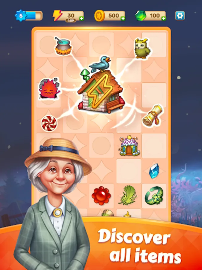 Each merged item can help restore some part of the mansion. Merge similar objects, solve puzzles, create a set of potions and tools to speed up cleaning and renovation!