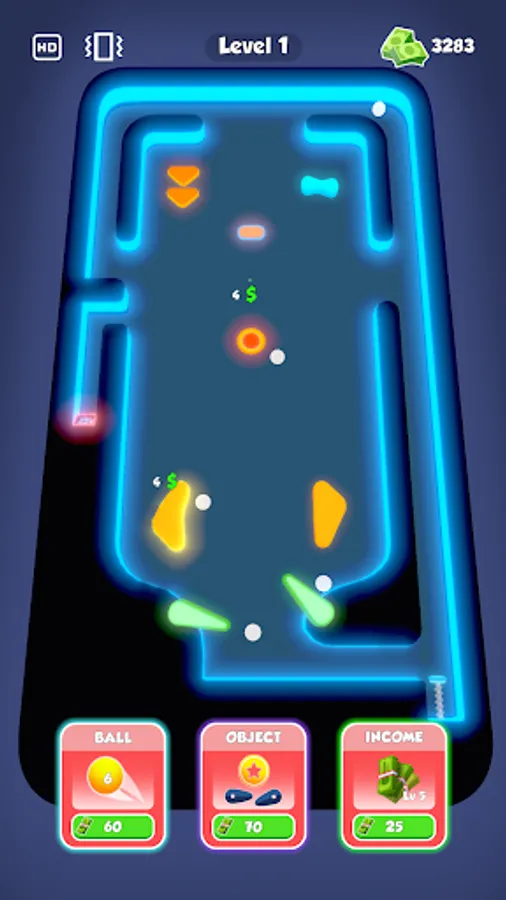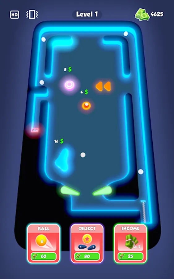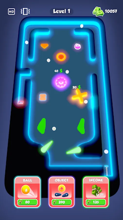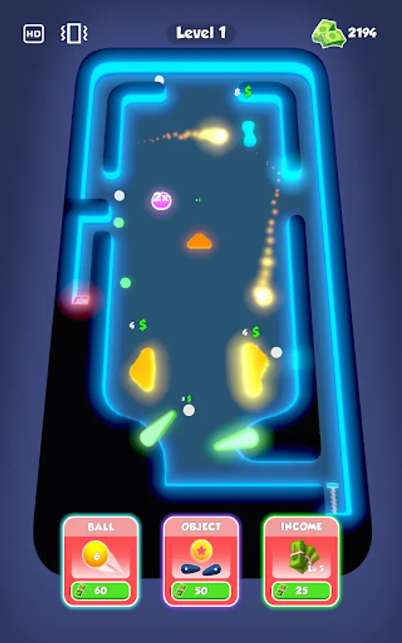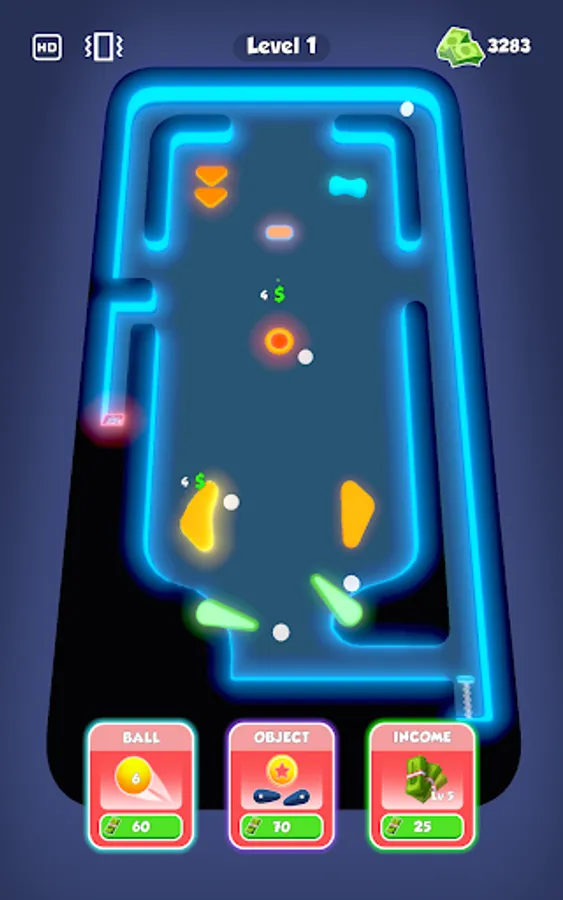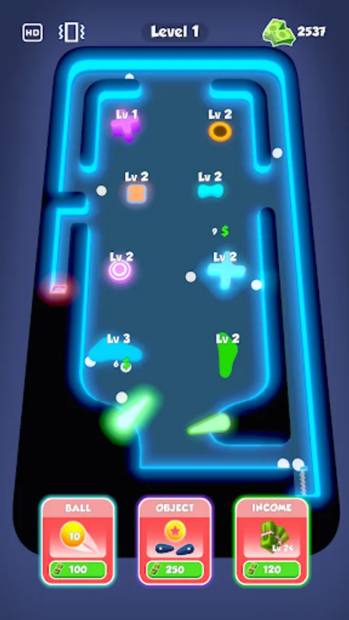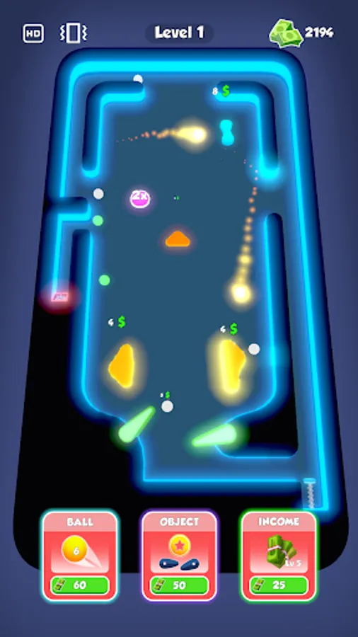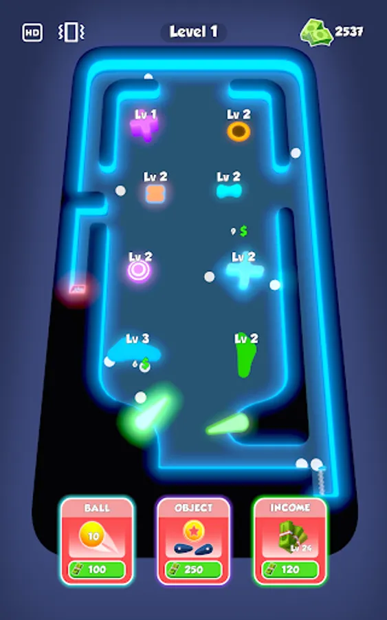 Purchase new balls and obstacles with earned money