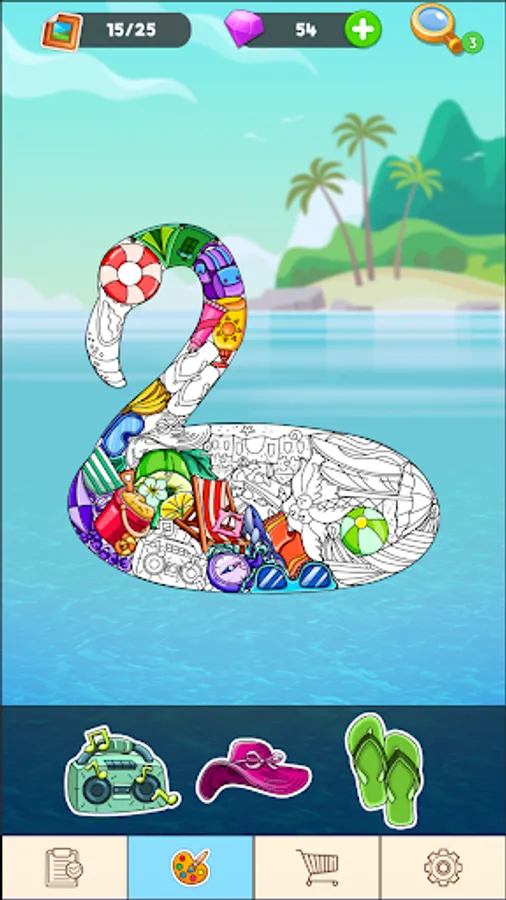 Complete tasks, complete levels, and get unique stickers for your collection. The more stickers you have, the more pictures you can color and decorate your gallery!