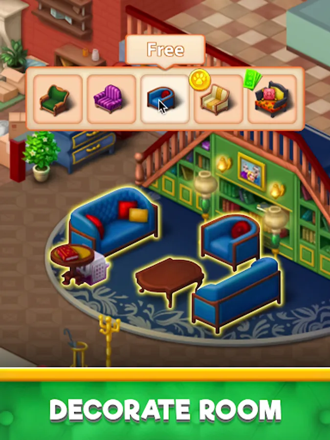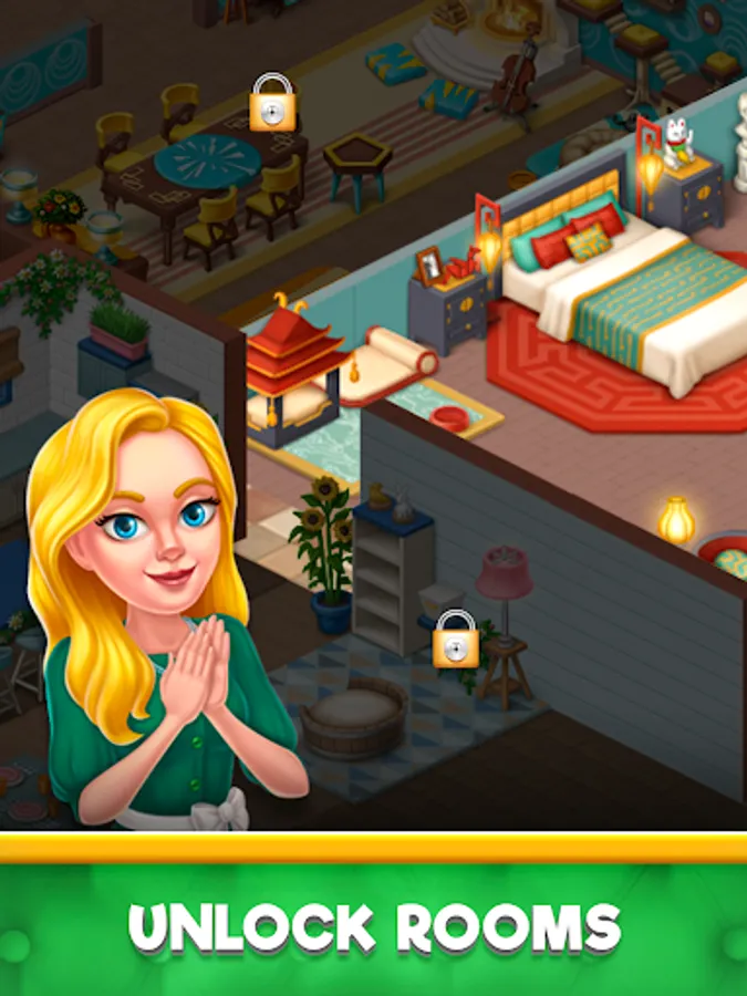 Unlock new rooms with unique gameplay, luxurious decorations, amazing animations.