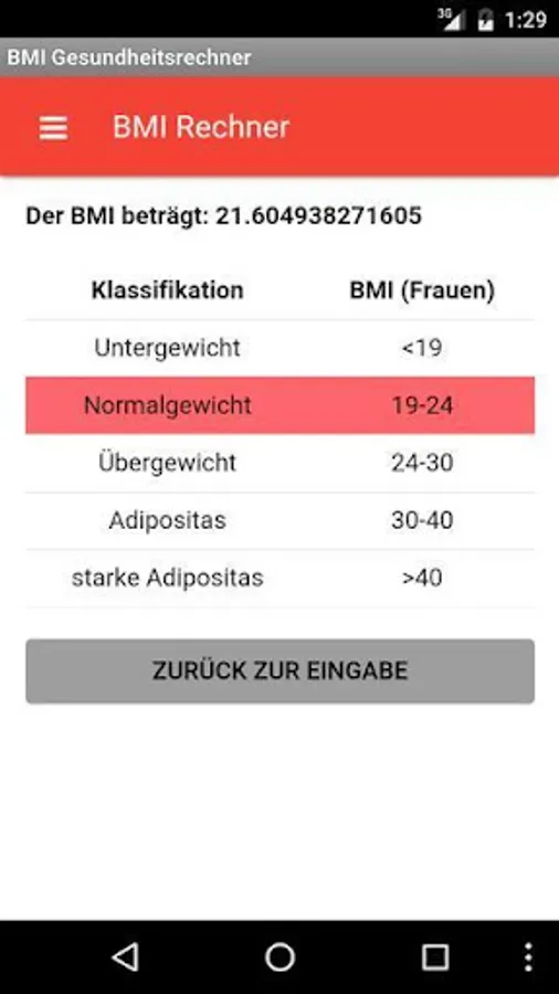 For this you can post your score to the BMI classification (according to German Nutrition Society e. V.) compare.