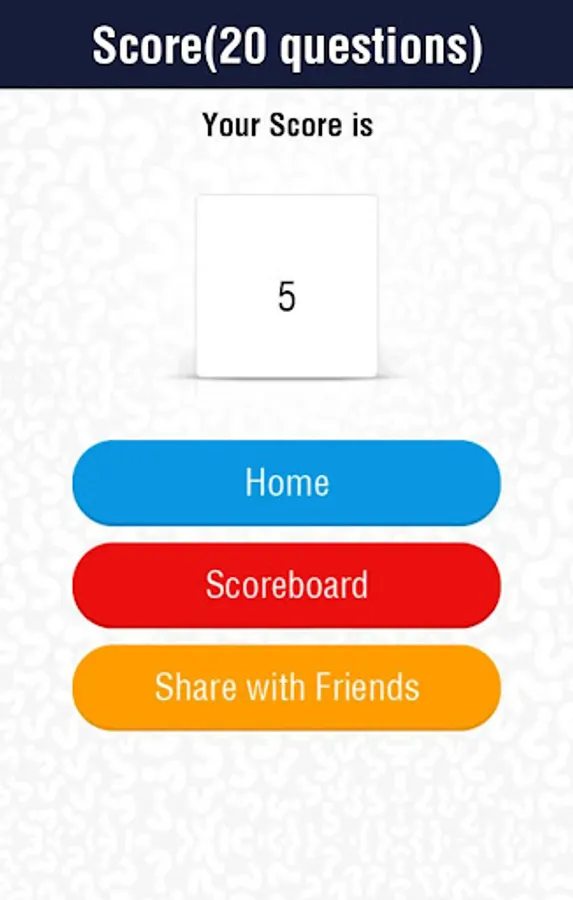 There are 5 different quizzes and 20 questions for 1 quiz